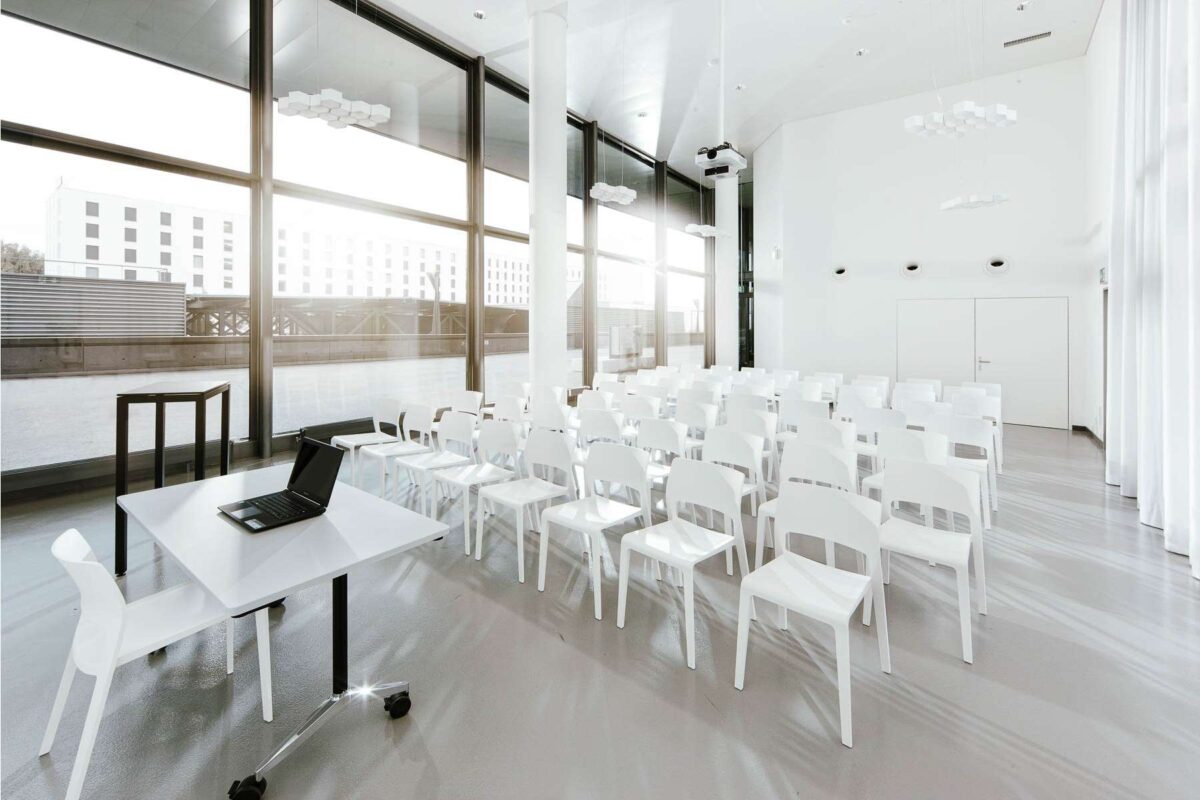 The air-conditioned Tech Park Basel Auditorium is ideal for seminars, meetings and workshops on a larger scale. In addition to plenty of daylight, a modern infrastructure and flexible seating for up to 70 people, the room impresses with its separate, direct access from the outside.